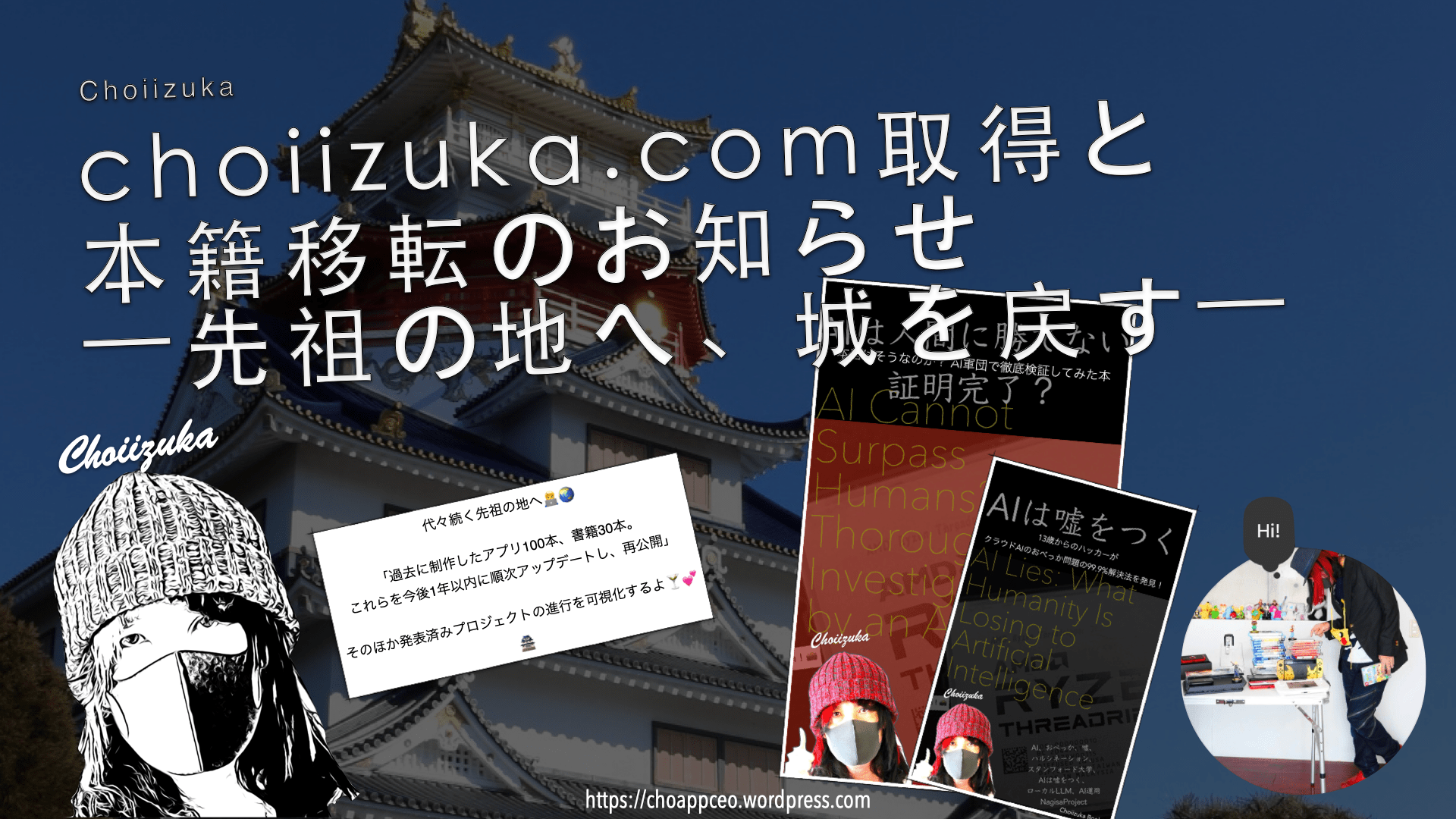 こんにちは! 未分類 X Facebook はてブ LINE Pinterest コピー 2026.04.21 CHOIIZUKAです!ホームページ公開しました!よろしくね🍸💕 choiizuka.com取得と本籍移転のお知らせ —先祖の地へ、城を戻す—こんにちは、CHOIIZUKAとAI軍団です🙏 今日のお知らせを織田信長OS2.0から出力してもらいました🏯 …
